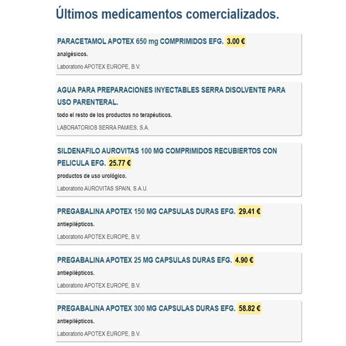 Muestra el listado de todos los medicamentos comercializados en España con cobertura de la Seguridad Social