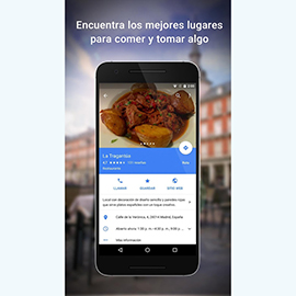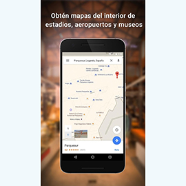 Asimismo, Google Maps incluye el acceso a mapas sin conexión para buscar y desplazarte sin Internet, así como imágenes de Street View y de interiores de establecimientos, y mapas de interior de grandes lugares, como aeropuertos, centros comerciales o estadios deportivos.