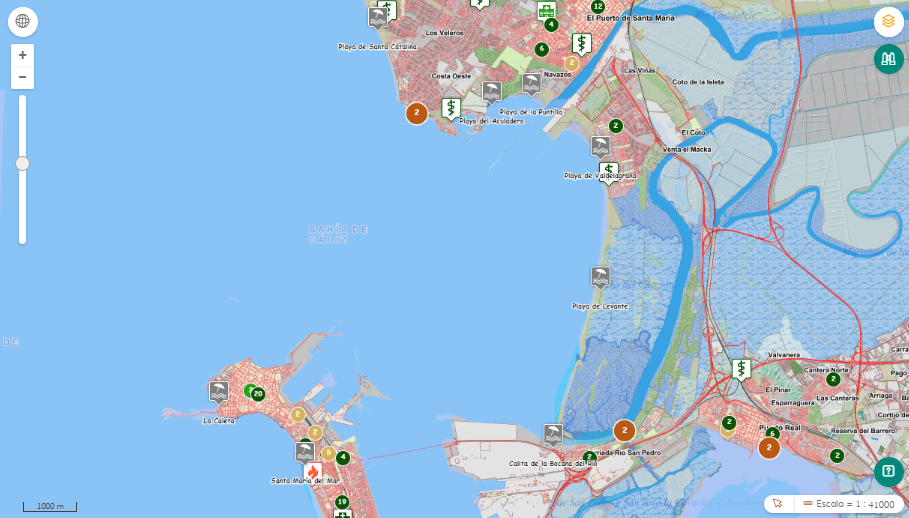 Este visor, disponible en la página de la Agencia de Seguridad y Gestión Integral de Emergencias de Andalucía, proporciona información sobre los diferentes tipos de playas conforme a su clasificación, sus características físicas o los grados de protección por temporada. También permite ver información de servicio como ortofotos, las banderas por las que se clasifican las playas, farmacias, puntos de control y vigilancia de incendios, servicios de salud públicos y privados u otros puntos de orden público como puestos de las fuerzas de orden y seguridad del Estado.