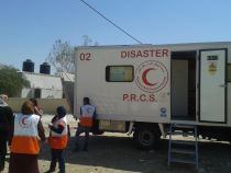 Visita en 2017 de personal de la AACID a la clínica móvil del proyecto de salud reproductiva financiado por la AACID a Cruz Roja Española, destinado a población desplazada en Cisjordania, Territorios Ocupados de Palestina.