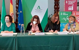La firma del convenio contó también con Laura Marín, Coordinadora del Sector de Administración Pública de CCOO y Rosario Martorán, Secretaria de Administración Autonómica y Servicio Público Andaluz de UGT.