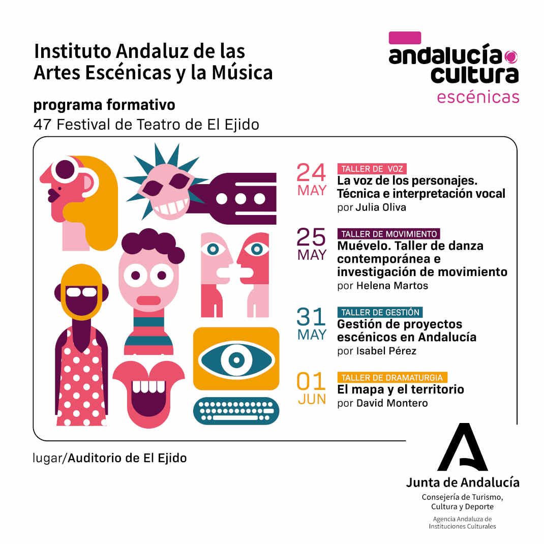 El Instituto Andaluz de las Artes Escénicas y la Música participa en la 47 edicón del Festival de Teatro de El Ejido con distintas propuesta formativas en el ámbito de las artes escénicas.