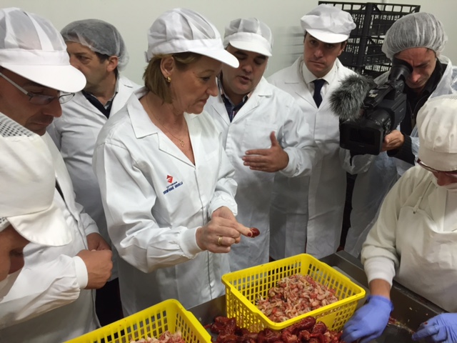 Carmen Ortiz visitó las instalaciones de la empresa Seafood Sevilla, en Isla Mayor, el pasado 31 de marzo