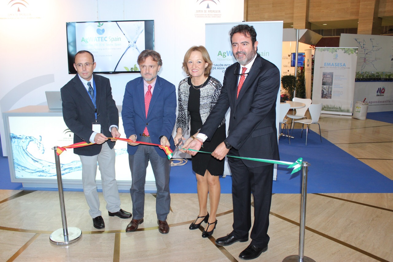 La consejera de Agricultura, Pesca y Desarrollo Rural, Carmen Ortiz, y el consejero de Medio Ambiente y Ordenación del Territorio, José Fiscal, han inaugurado hoy en Sevilla el I Salón Internacional en Tecnología de Agua y Agricultura, Bioeconomía y Control Medioambiental, Agwatec Spain 2016, que se celebra en el Palacio de Exposiciones y Congresos de Sevilla (Fibes) hasta el próximo miércoles 9 de noviembre. La Junta ha colaborado en la organización de este evento que se presenta como un espacio óptimo para promover la relación entre empresas, investigadores, productores y agroindustrias que contribuyan a posicionar a Andalucía a la cabeza del sector tecnológico del tratamiento del agua y los subproductos del sector primario.