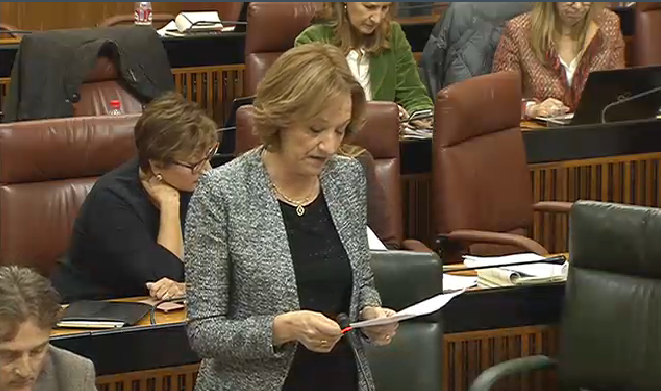 Carmen Ortiz durante su intervención en el pleno del Parlamento de Andalucía