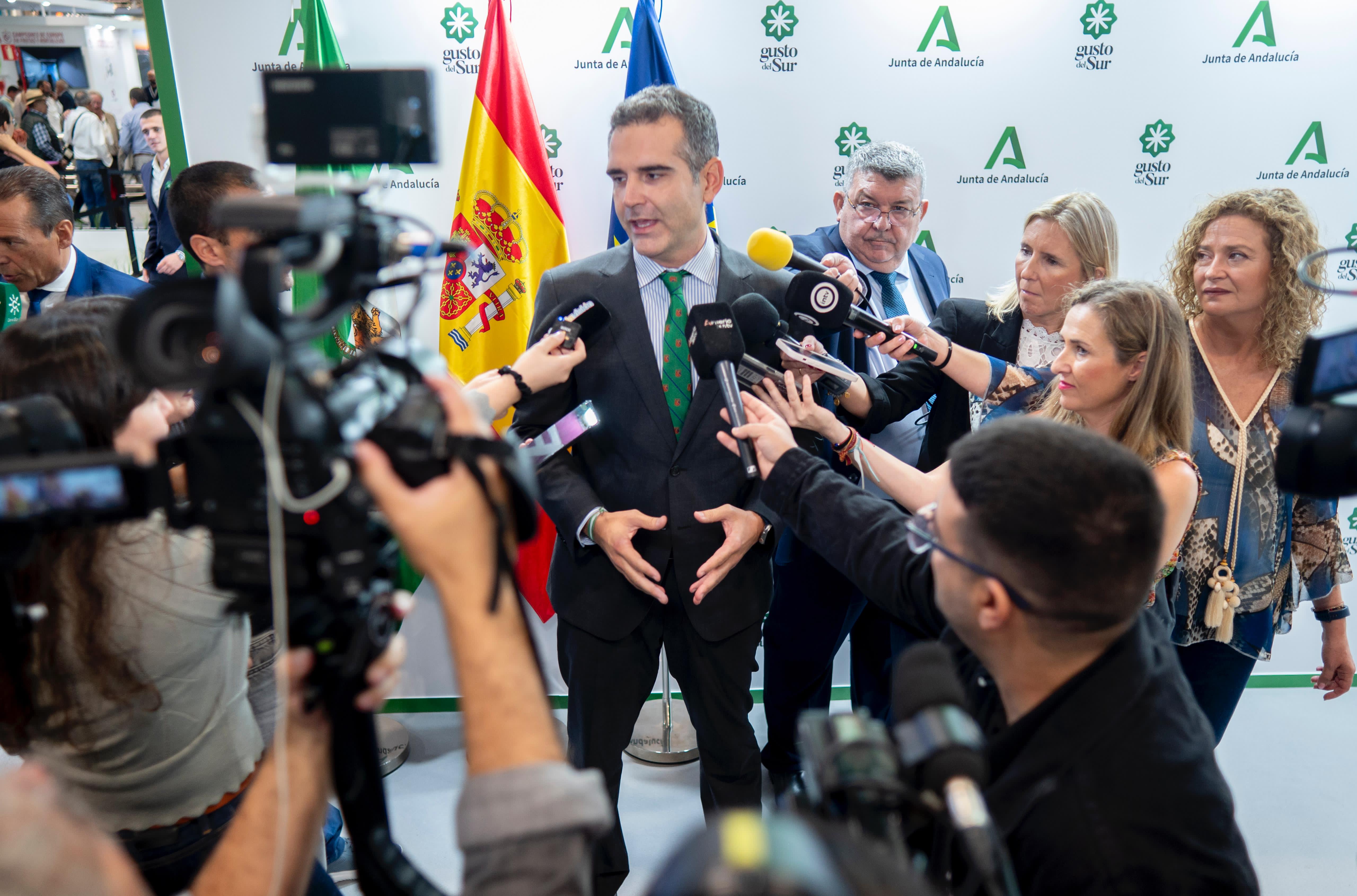 El consejero de Agricultura en una atención a medios en su segundo día en Fruit Attraction