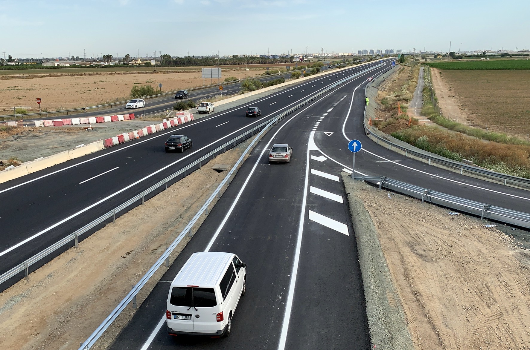primeros vehículos circulando por la calzada ya finalizada en la autovía de Acceso Norte.