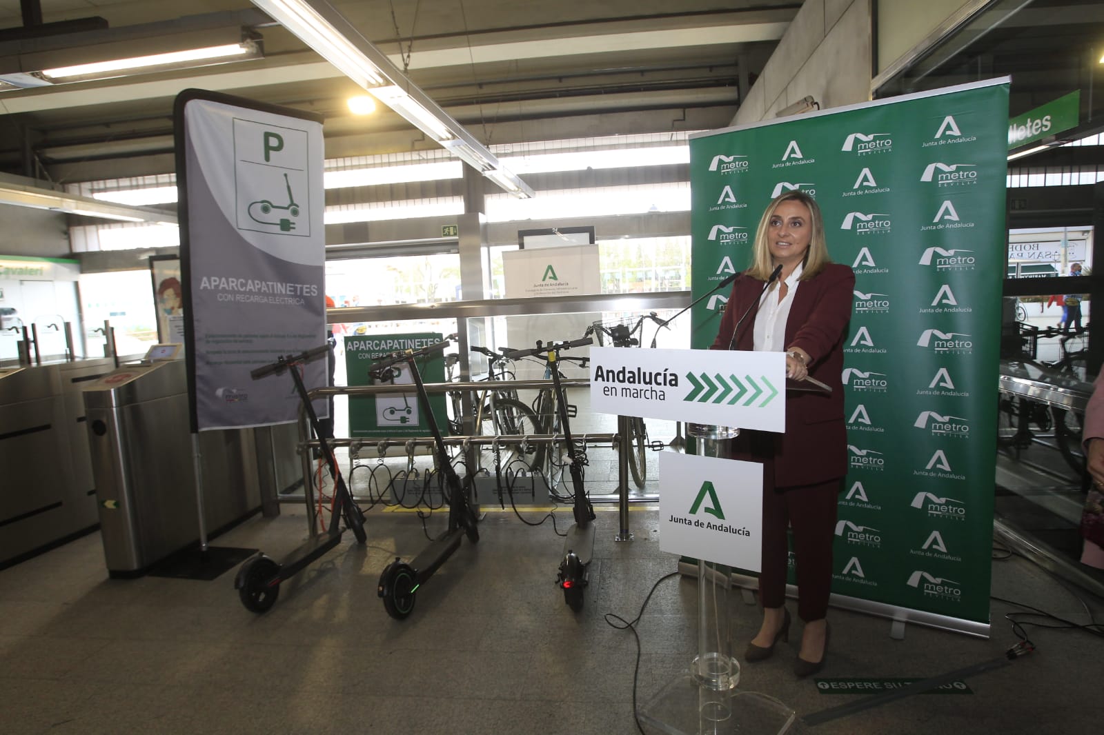 El uso del patinete eléctrico se está extendiendo de forma exponencial en las grandes ciudades y, en este contexto, la consejera de Fomento, Marifrán Carazo, ha manifestado que “este nuevo equipamiento de Metro de Sevilla abre una oportunidad para potenciar la combinación de estos nuevos modos de movilidad unipersonal y sostenibles, como los patinetes eléctricos, con un transporte público como el suburbano, lo que contribuye también a ampliar el radio de influencia de la Línea 1”.