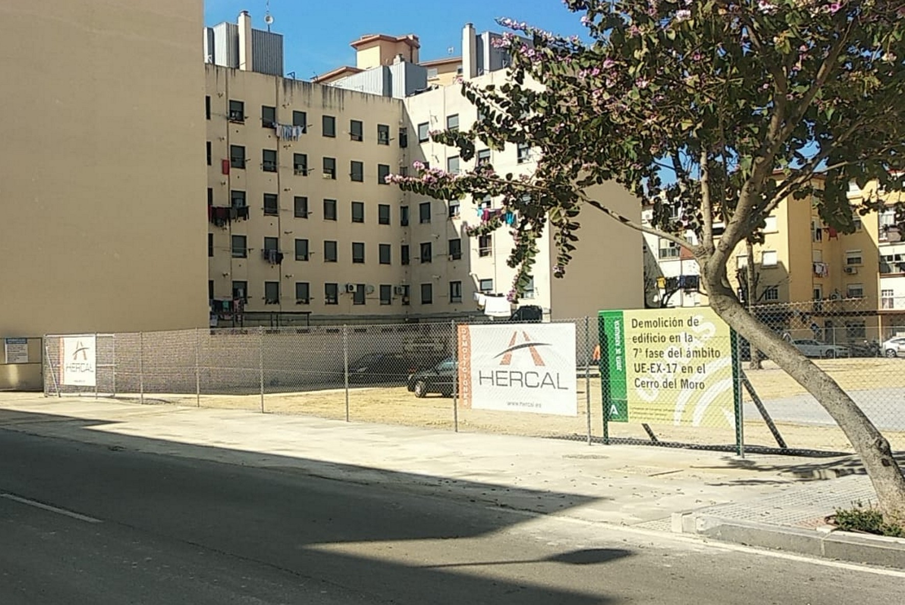 La Consejería de Fomento, Infraestructuras y Ordenación del Territorio ha concluido los trabajos de demolición de los tres edificios del Cerro del Moro incluidos en la séptima fase del Plan de Remodelación Integral del barrio. Los tres bloques, que albergaban 47 viviendas y locales en los bajos, ocupaban hasta su derribo la manzana delimitada por las calles Sor Cristina López García, Alcalá del Valle y avenida de Valencia, convertida ahora en un solar.