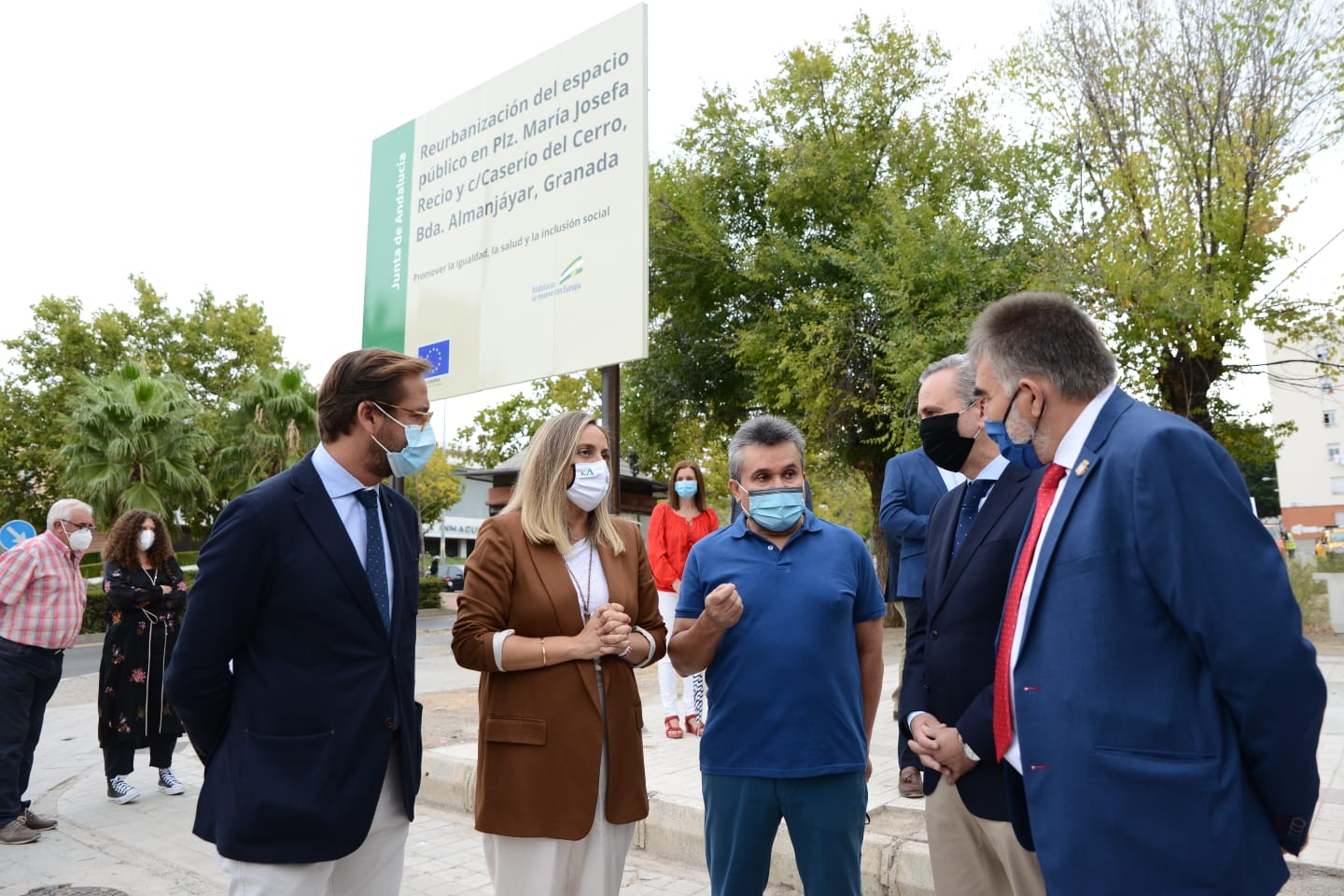 La consejera de Fomento, Infraestructuras y Ordenación del Territorio, Marifrán Carazo, ha presentado a los vecinos de la plaza María Josefa Recio, en Almanjáyar, los detalles del proyecto de reurbanización de dicho espacio y sus alrededores, que acaba de ser contratado con un presupuesto de 534.857 euros. Marifrán Carazo ha anunciado a los vecinos el inicio de las obras en los próximos días, comprometiendo su finalización en seis meses. Es la primera vez desde que se construyeron estos pisos, en 1983, que se mejoran sus espacios públicos.