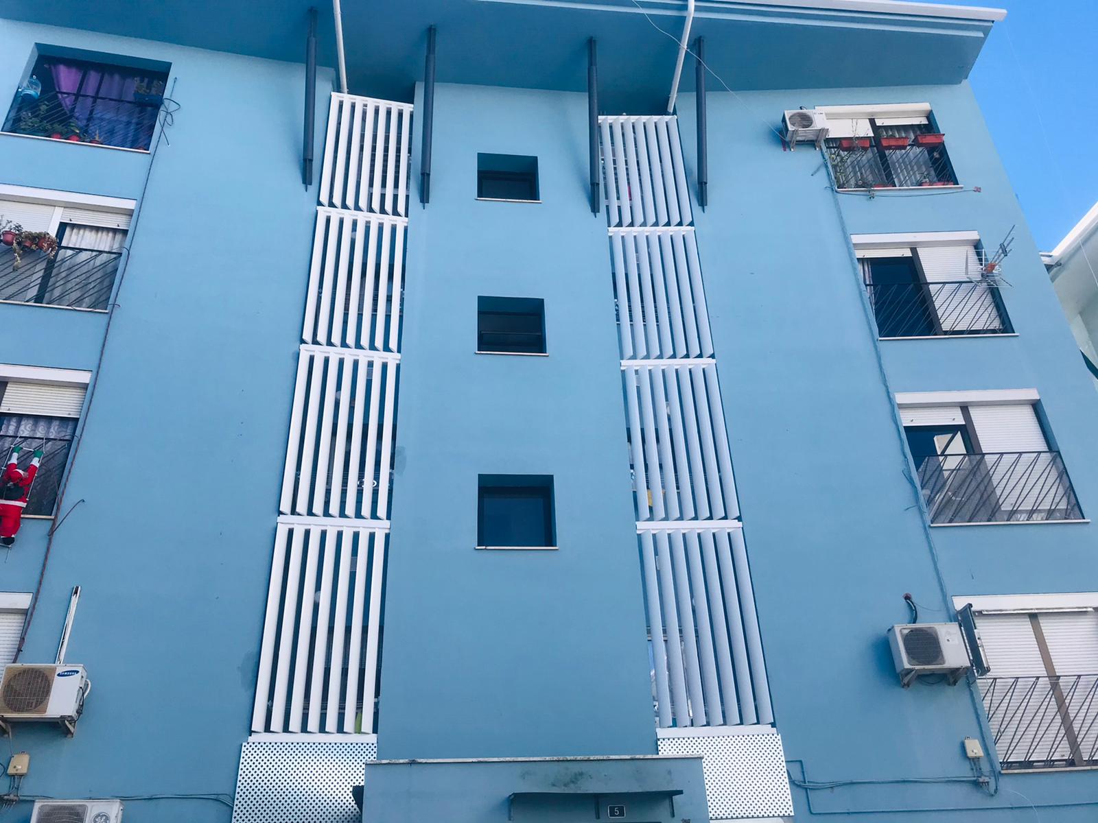 La intervención se contrató de nuevo, el pasado mes de junio, y ha consistido en la mejora de los espacios e instalaciones comunes de los cuatro bloques que conforman esta promoción, sustituyendo o reparando en su caso los cerramientos de lamas de los patios y las instalaciones interiores de estos espacios de uso común.