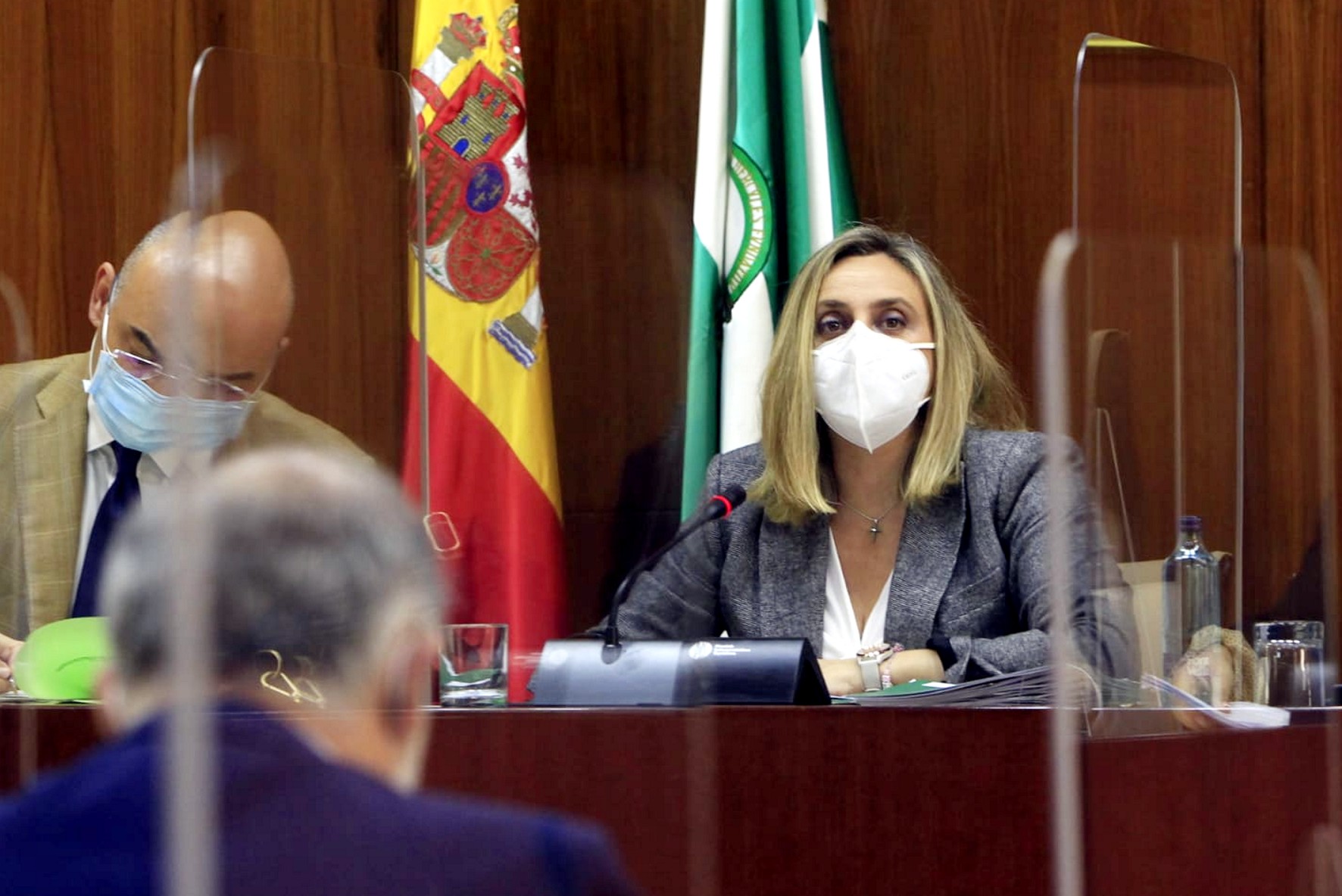 La consejera de Fomento, Infraestructuras y Ordenación del Territorio, Marifrán Carazo, en el Parlamento andaluz.