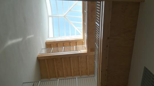 Además de la fachada, en su interior se han conservado también los muros de carga, que han sido consolidados, así como el patio central y las galerías que lo rodean en las plantas primera a tercera. En cambio, se han construido nuevos forjados y se han redefinido las viviendas con criterios actuales y de acuerdo con las normativas vigentes. Se han construido nuevas escaleras, aunque respetando el diseño original, y se ha instalado también en la finca un ascensor, con lo que se facilita la movilidad a las personas que residen en la finca.
