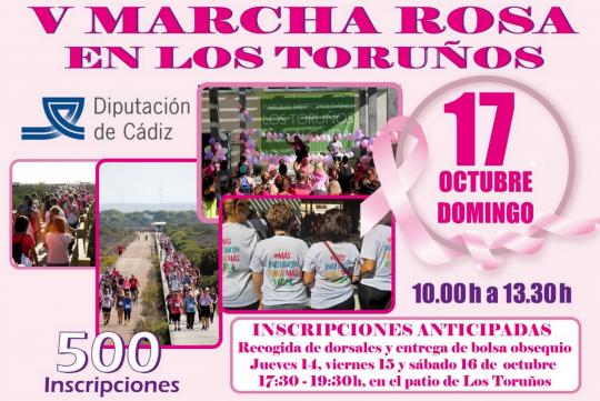 El domingo, 17 de octubre, tendrá lugar en el Parque Metropolitano Marisma de los Toruños y Pinar de la Algaida la V Marcha Rosa, carrera solidaria que cada otoño convoca la Asociación de Mujeres con Cáncer de la Bahía de Cádiz, con el objetivo de dar visibilidad a esta enfermedad y recaudar fondos para promover la investigación y mejorar la asistencia a las pacientes diagnosticadas.