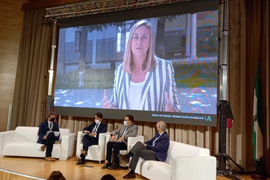 El compromiso de la Junta de Andalucía por la rehabilitación residencial lo ha puesto de manifiesto también el director general de AVRA, la agencia para la vivienda y el suelo adscrita a la Consejería de Fomento, que gestiona el parque público residencial andaluz con 75.000 viviendas, de ellas casi 50.000 en alquiler social. Juan Carlos del Pino ha apuntado en su intervención que la Agencia ha ejecutado en esta legislatura obras de rehabilitación energética en 8.000 viviendas de su titularidad, con una inversión de 39 millones de euros.