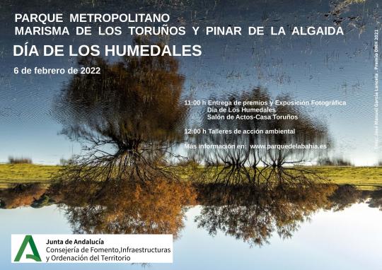 El Parque Metropolitano Marisma de los Toruños y Pinar de la Algaida conmemorará el próximo domingo, 6 de febrero, el Día Mundial de los Humedales, con un programa de actividades que incluye la entrega de premios del concurso de fotografías convocado con este motivo, la inauguración de una exposición con la selección de las mejores obras presentadas, y el desarrollo de talleres de contenido medioambiental, actividades todas ellas de acceso libre y gratuito.