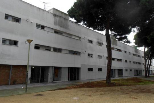 Fachada de la promoción de 46 viviendas públicas en alquiler de Punta Umbría, en la provincia de Huelva.
