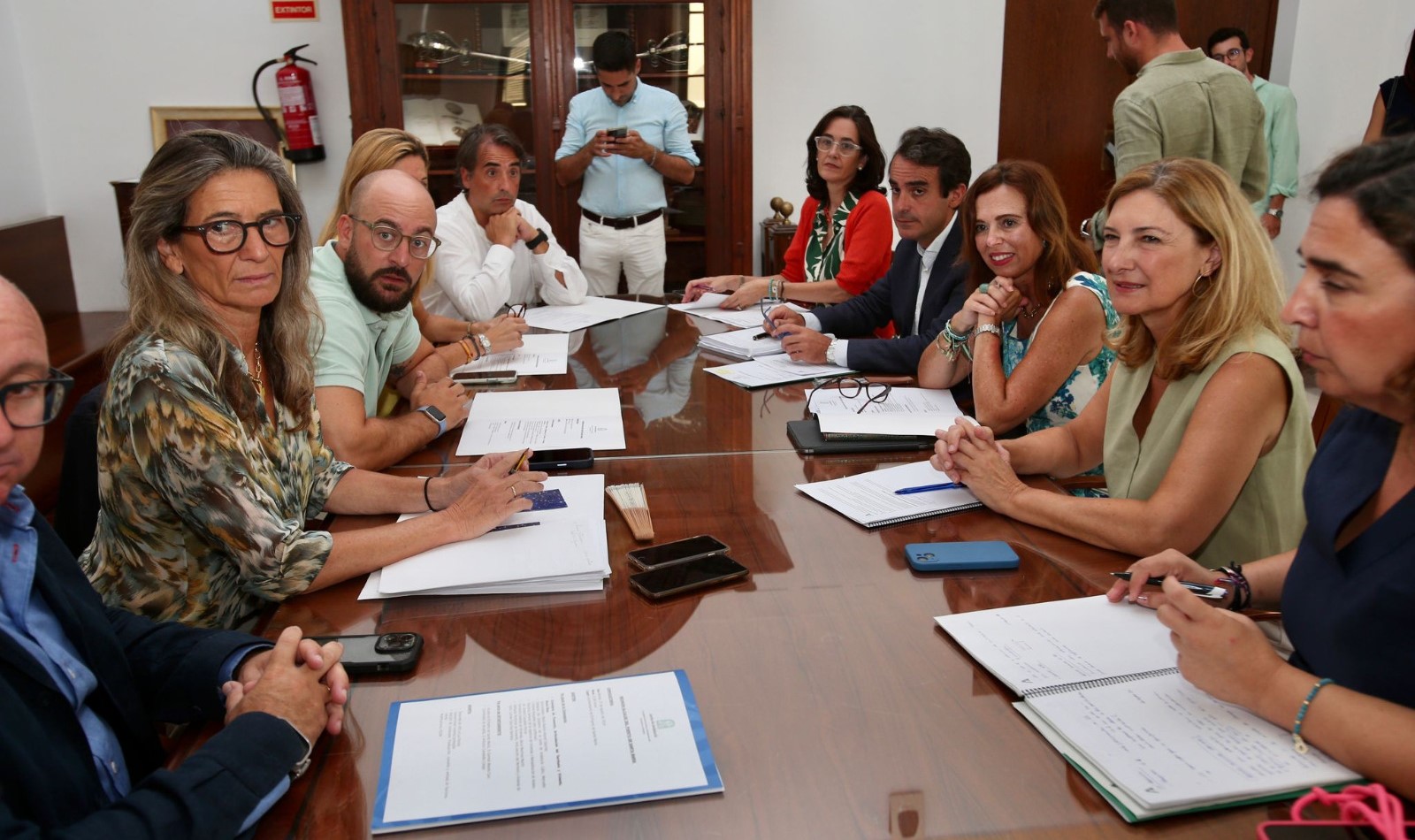 Rocío Díaz ha acudido a la reunión acompañada por el viceconsejero de Fomento, Mario Muñoz-Atanet; la secretaria general de Vivienda, Alicia Martínez; la secretaria general de AVRA, Susana Cayuelas, y la delegada territorial de Fomento en la provincia de Cádiz, Carmen Sánchez.