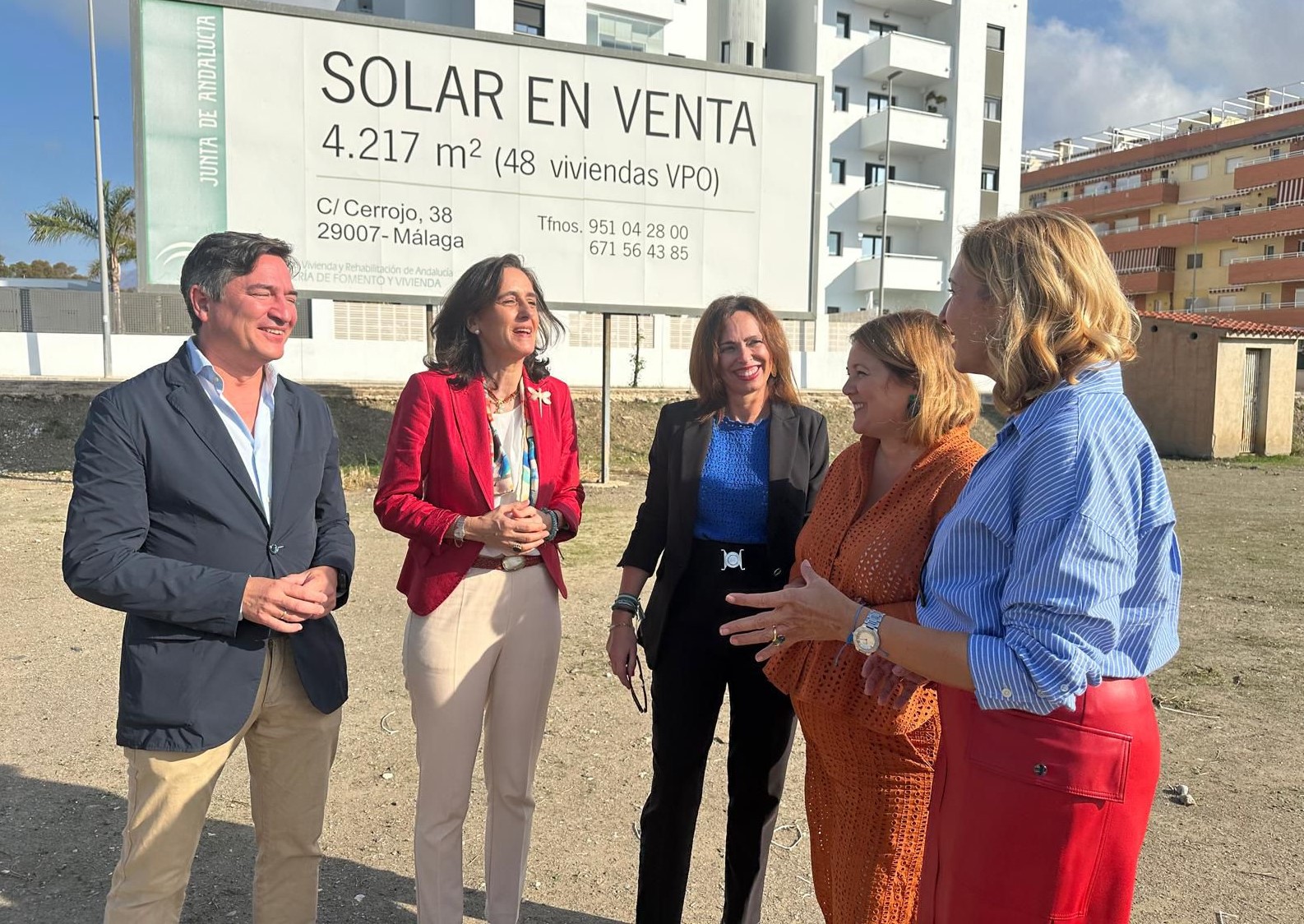 La Consejería de Fomento, Articulación del Territorio y Vivienda, a través de la Agencia de Vivienda y Rehabilitación de Andalucía (AVRA), ha sacado a concurso una parcela en el municipio malagueño de Algarrobo para impulsar la promoción de 48 viviendas protegidas a través del sistema de permuta de suelos. La consejera de Fomento, Rocío Díaz, ha visitado esta mañana el solar donde se edificará esta promoción residencial, acompañada de la directora general de AVRA, Susana Cayuelas, y la alcaldesa del municipio, Natacha Rivas.