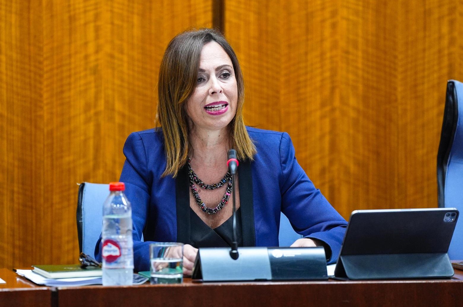 La consejera de Fomento, Rocío Díaz, en su intervención esta mañana en la Comisión de Fomento del Parlamento de Andalucía.