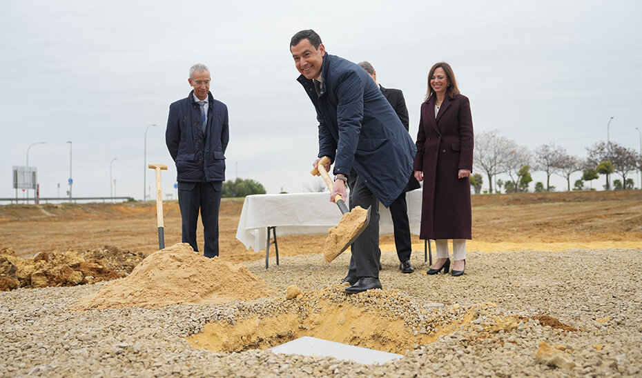 El presidente de la Junta de Andalucía, Juanma Moreno, ha asistido al acto de colocación de la primera piedra de una promoción de 38 viviendas públicas en la zona de los Ruedos de Consolación en el municipio sevillano de Utrera, donde ha destacado el compromiso del Gobierno andaluz con la creación de viviendas dignas y asequibles para las familias con menos recursos económicos.