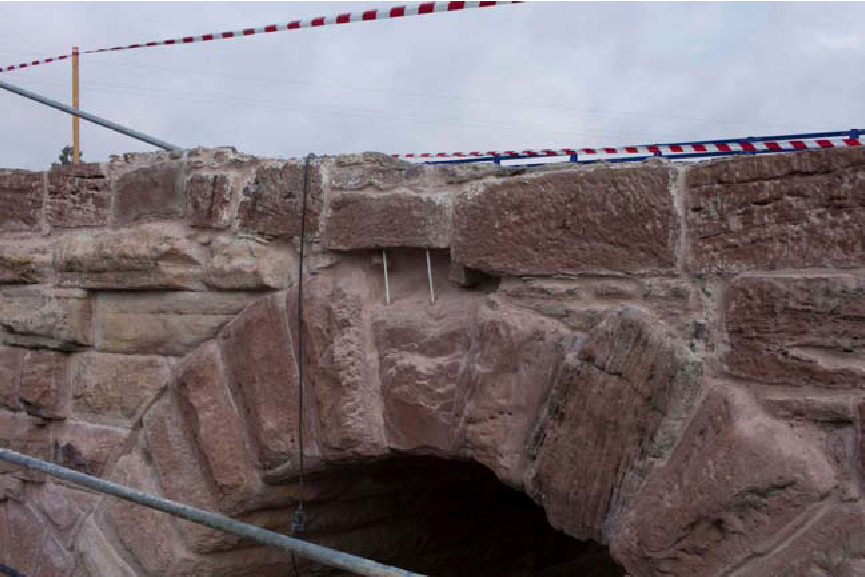 En los sillares más afectados por la pérdida de sus propiedades mecánicas se efectuó un tratamiento puntual de consolidación a base de silicato de etilo.