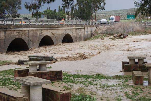 – Construcción, en 1992, del puente de la autovía A-IV, que eleva el cauce del arroyo al actuar como presa.