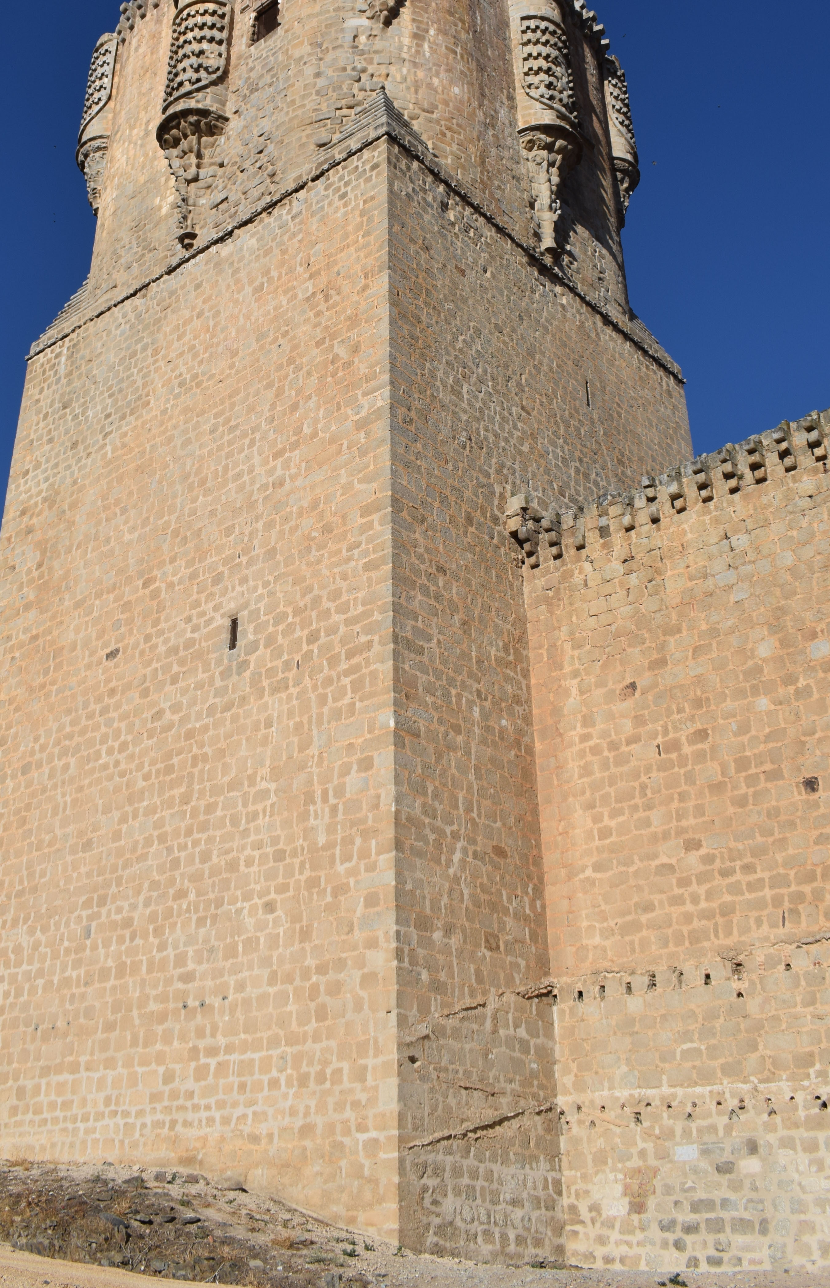 De mayor complejidad fue la reintegración de huecos con derrumbes en los muros y torres del castillo, para la que se empleó el criterio de diferenciación material y retranqueo de las nuevas superficies construidas, de manera que su diferencia con el original fuera clara y permitiera futuras intervenciones de reconstrucción.