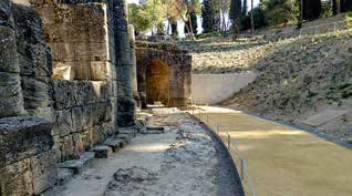 La intervención contemplada en esta reseña complementa los trabajos de consolidación estructural realizados con anterioridad en el anfiteatro y posibilita la ampliación del recorrido de visitas a este sector con extensión al exterior de la puerta libtinaria. Para hacerlo posible, se ha resuelto la incidencia que la proximidad de las laderas norte y oeste producía sobre el edificio en parte aterrado por los aportes realizados para el trazado de caminos forestales y sobre su sistema hidráulico.