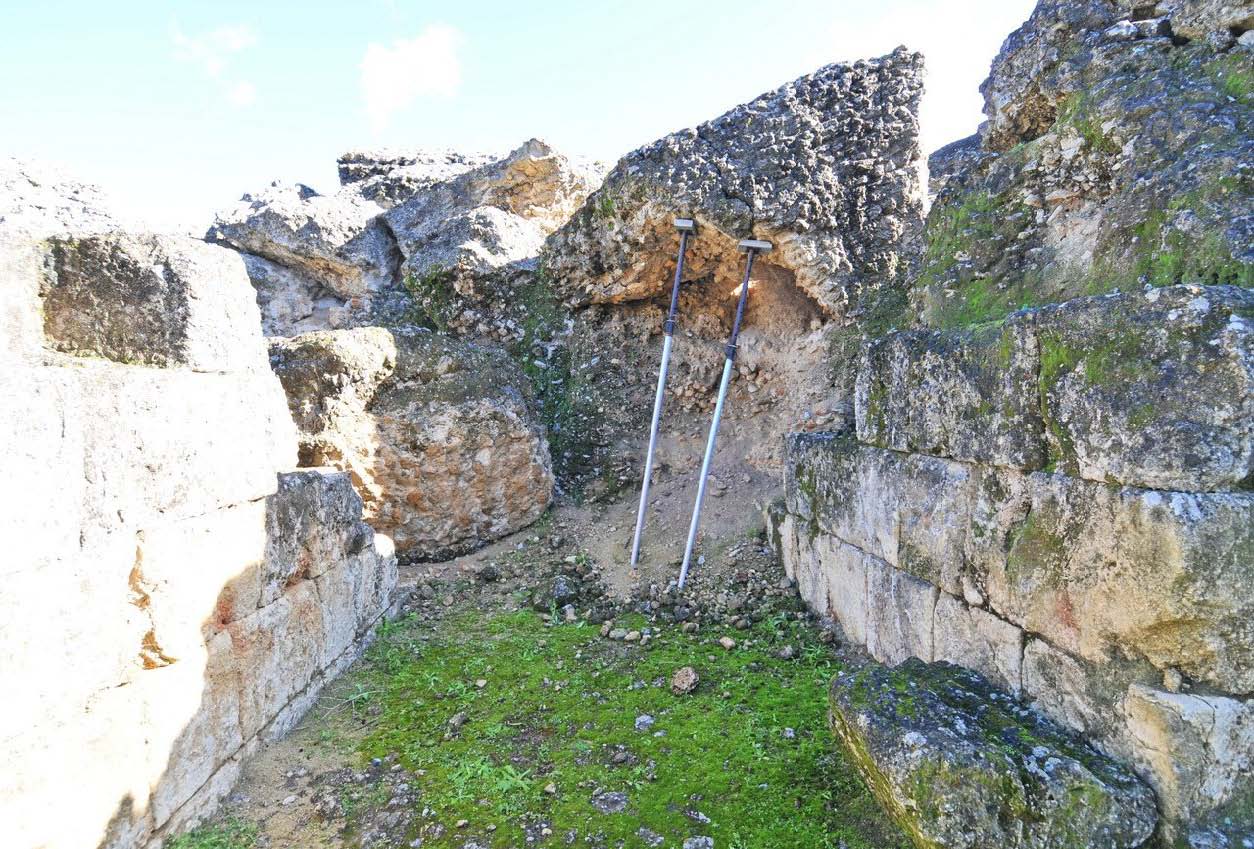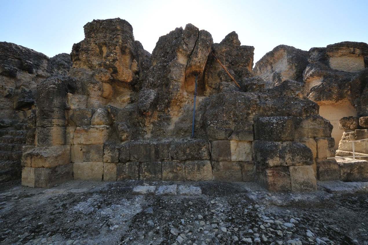 En el edificio se ha realizado la excavación superficial y retirada de rellenos, con el objeto de conseguir plataformas estables para facilitar la evacuación controlada de las aguas de lluvia, con recuperación de elementos constructivos originales. La estabilización y consolidación de masas estructurales inestables ha requerido, en situaciones puntuales, apoyos complementarios sobre muros auxiliares, cuyo tratamiento neutro los presenta en un discreto segundo plano.