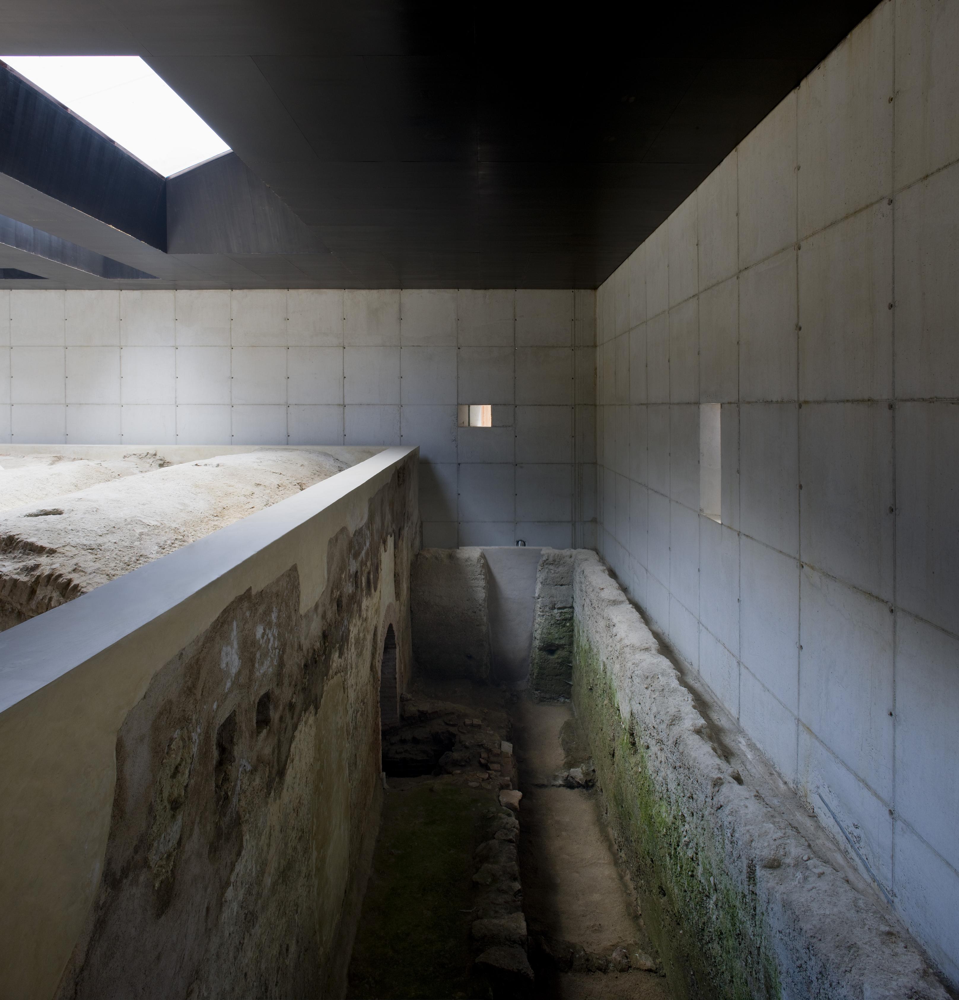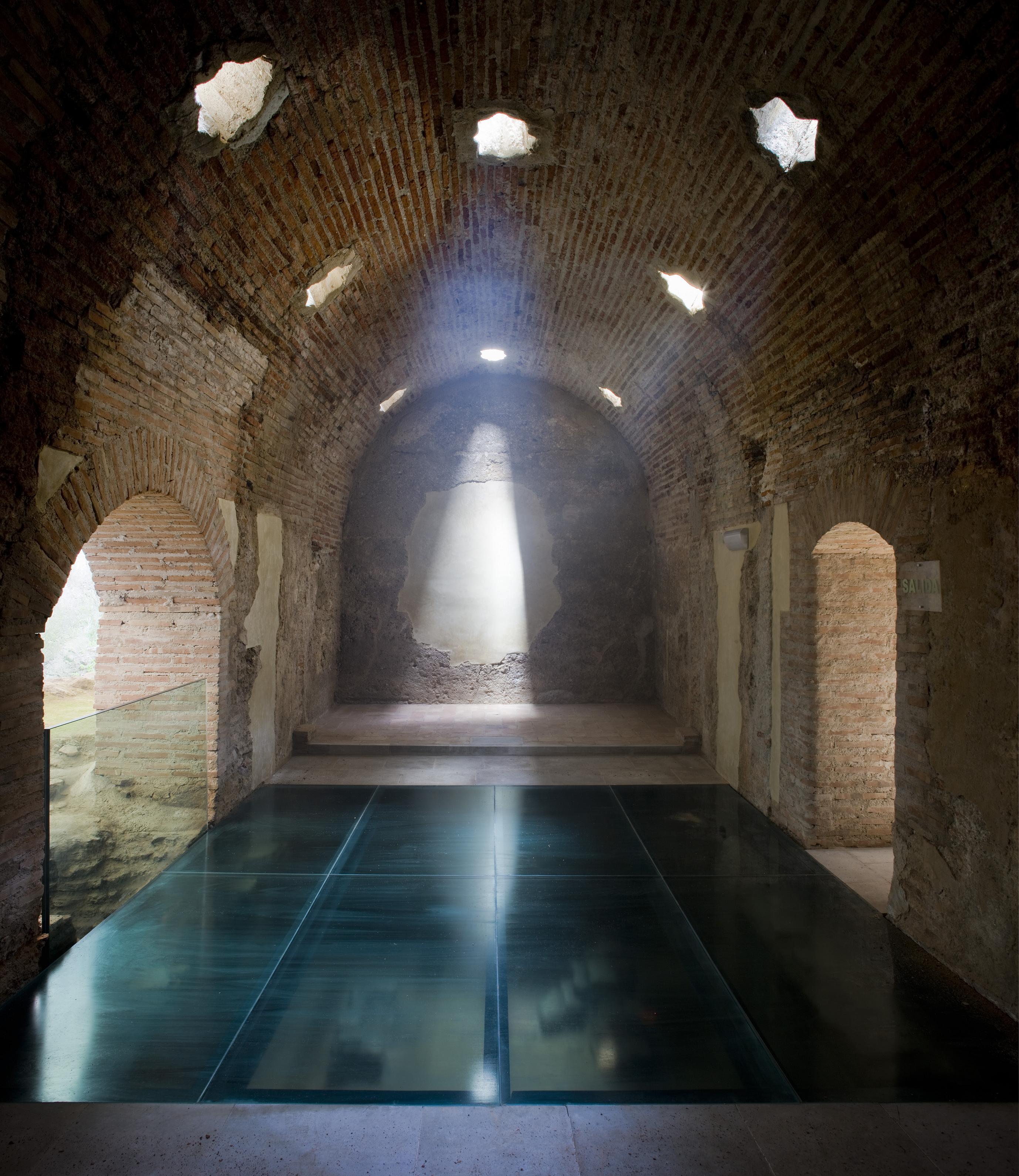 La puesta en valor del conjunto se basa en tres aspectos sustanciales de la arquitectura sobre la que se actúa: la escala, la luz y el agua. Se ha tratado de generar un espacio protagonizado por los restos y el monumento, anticipando la esencia de los baños a través de la luz y la presencia del agua.