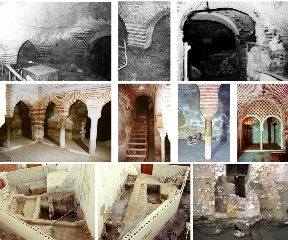 - La restauración y restitución de los cuerpos principales de los baños, recuperando las cotas originales, eliminando materiales inadecuados y consolidando las fábricas originales