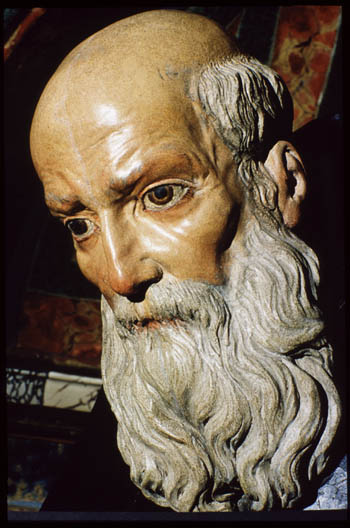 De la labor escultórica realizada por Risueño, conviene resaltar el naturalismo patente en la cabeza de san Antonio Abad, la delicadeza y redondez de los niños y angelotes y, sobre todo, los efectos de gran teatralidad que consigue el artista en el grupo principal del retablo. Además de tallar las esculturas, José Risueño las policromó, logrando efectos tan sublimes como el realismo del rostro de san Antonio Abad, las excelentes encarnaciones de los angelotes y la riqueza de las túnicas y mantos de las santas.