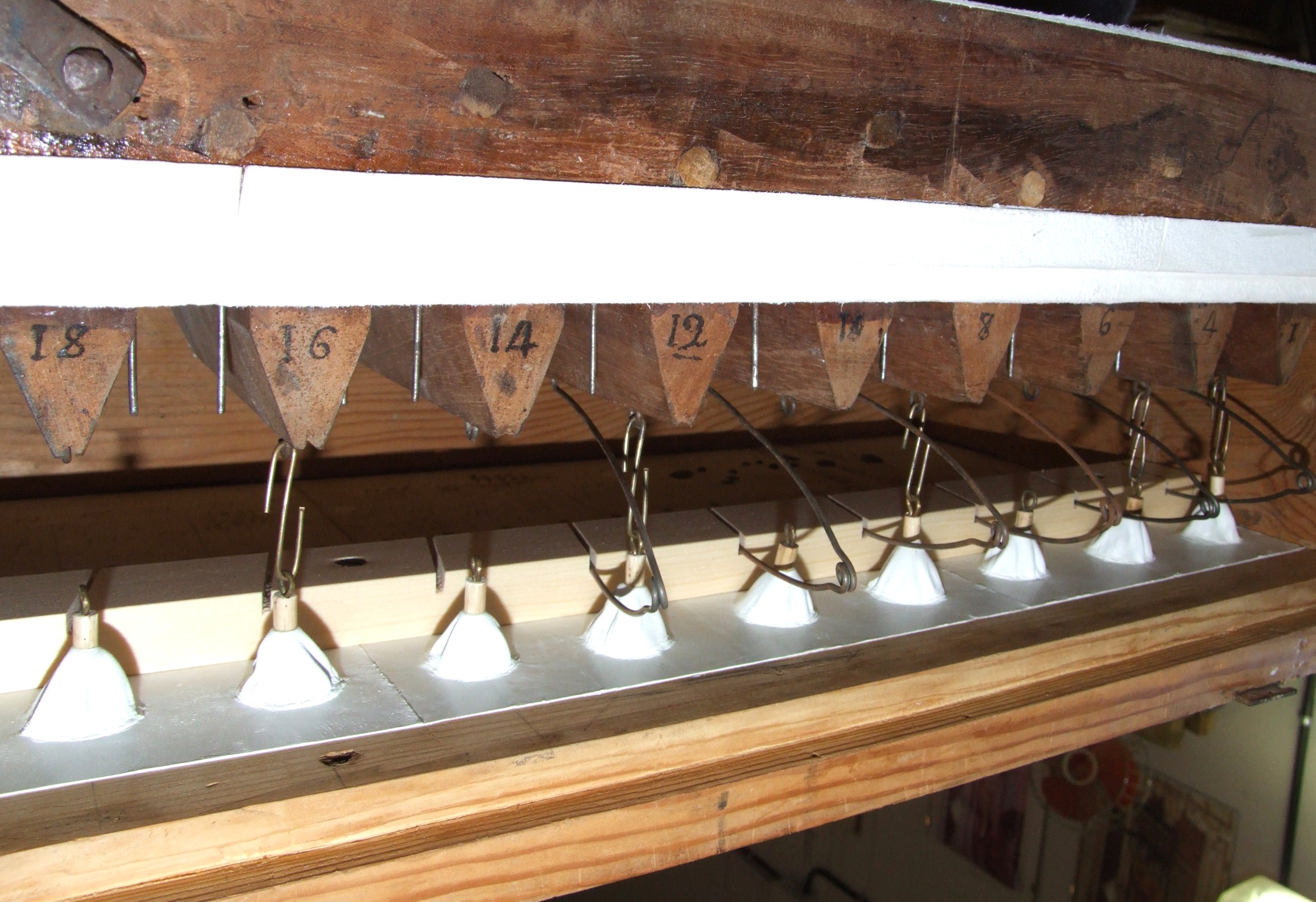 Se eliminó la instalación eléctrica antigua y se instaló un nuevo cableado por fuera del mueble. Para completar los trabajos se intervino dos puertas y dos vigas de gran valor histórico del entorno del órgano y que presentaban un estado de conservación lamentable.
