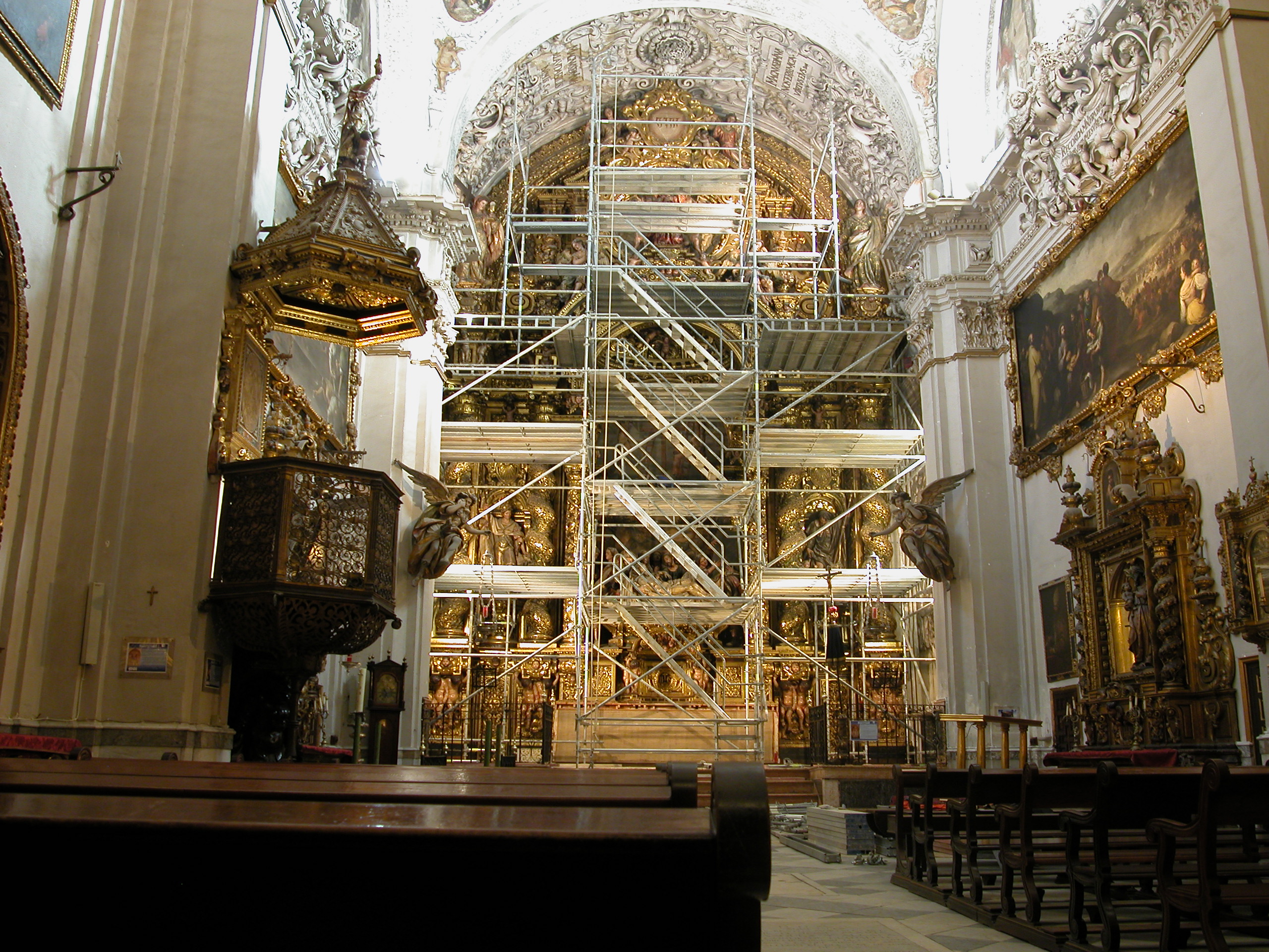 La intervención se completó con la instalación de la iluminación independientemente del retablo y con la restauración de los ángeles lampareros y de las yeserías del presbiterio.