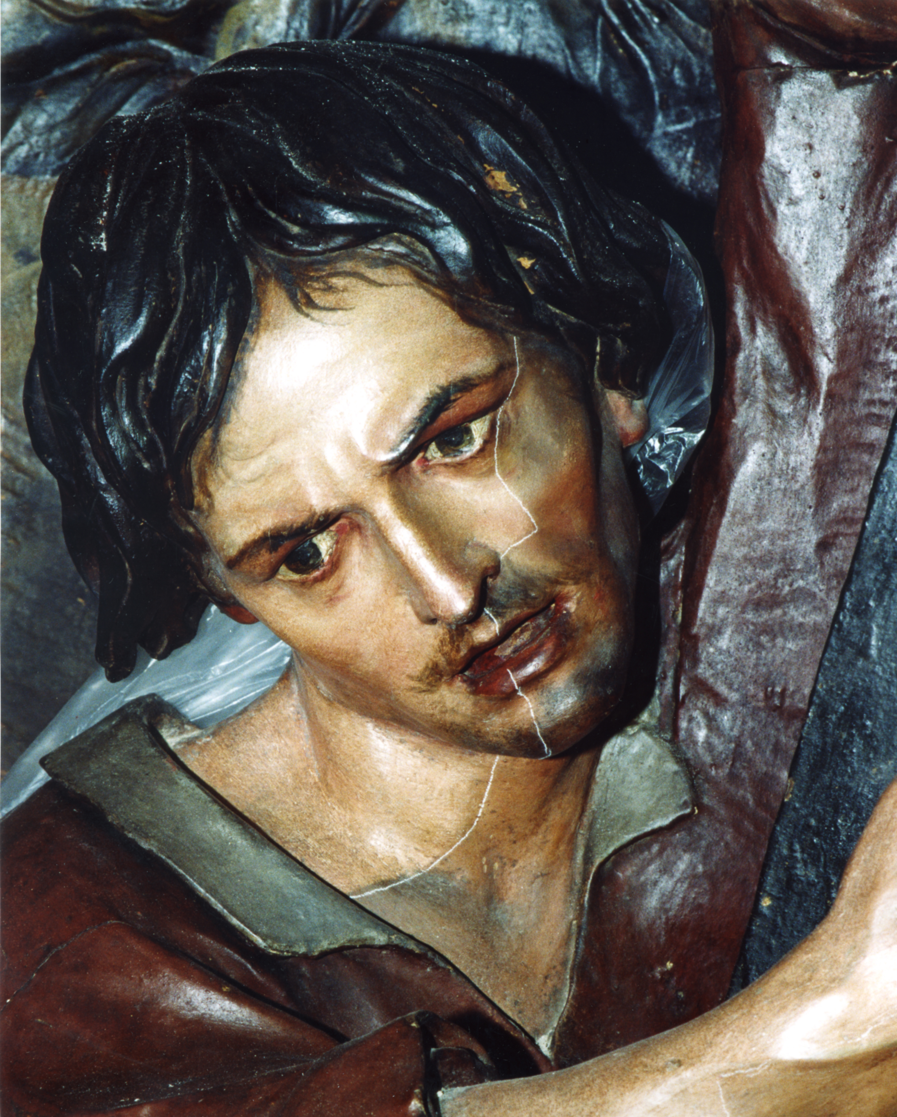 Finalizadas las labores de limpieza y eliminación de repintes, aparecieron sobre la policromía original estucos antiguos procedentes de anteriores restauraciones. Estos se retiraron de manera meticulosa ya que eran extremadamente duros y el único método eficaz fue el mecánico.