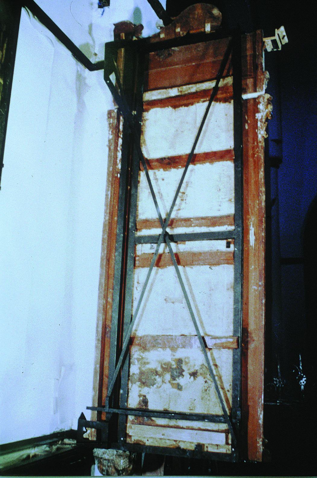 Una vez protegida toda la superficie, se realizó el montaje del retablo sobre una estructura nueva de acero inoxidable. Ésta consta de tres hojas abatibles, una por calle, para hacer fácilmente accesible por el reverso todos los elementos del retablo, que se sujetan individualmente mediante piezas regulables que permiten el movimiento de la madera. Esta solución permite la aplicación de tratamientos periódicos por el reverso y el desmontaje parcial de piezas en los casos que se requiera.