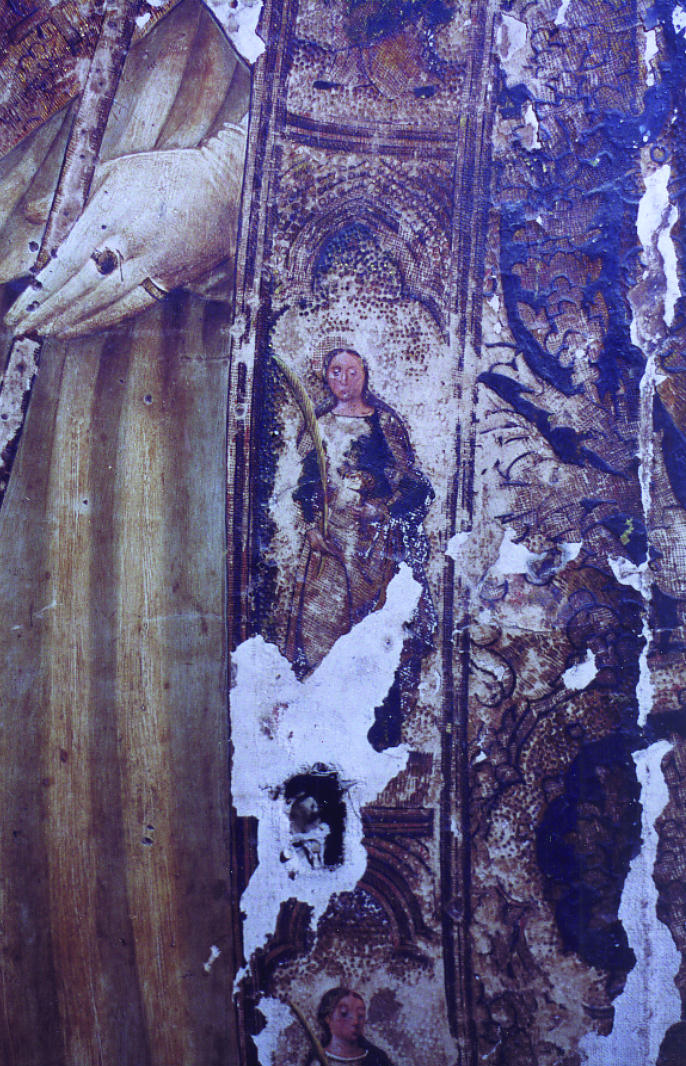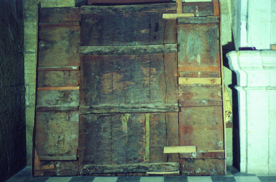 Otras patologías que se advertían eran las derivadas del ataque de xilófagos, pérdidas muy abundantes de preparación y película pictórica, golpes, arañazos, incisiones, oxidación de barnices, además de acumulación de polvo y excrementos de animales.