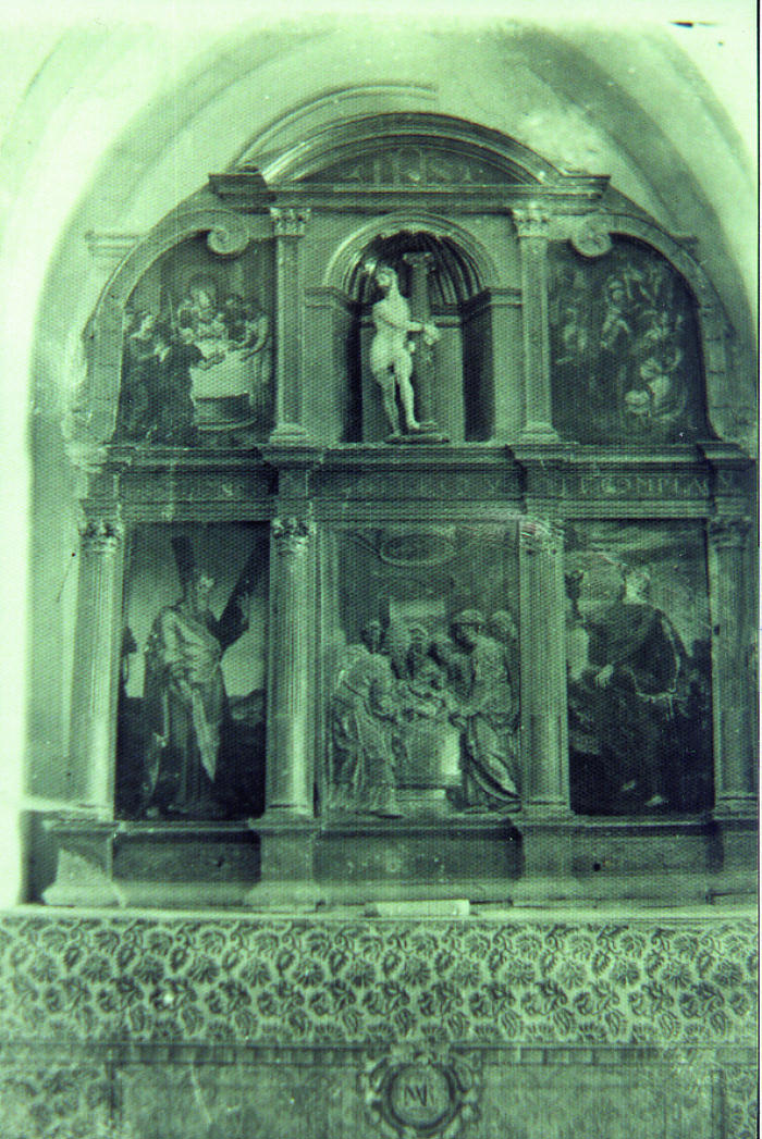 La tabla de Santo Domingo de Silos, fechada en torno a 1510, es obra de Juan Ramírez, pintor de la escuela granadina, y las restantes obras, del último tercio del XVI, se atribuyen al taller de los Raxis. El autor del relieve se desconoce.
