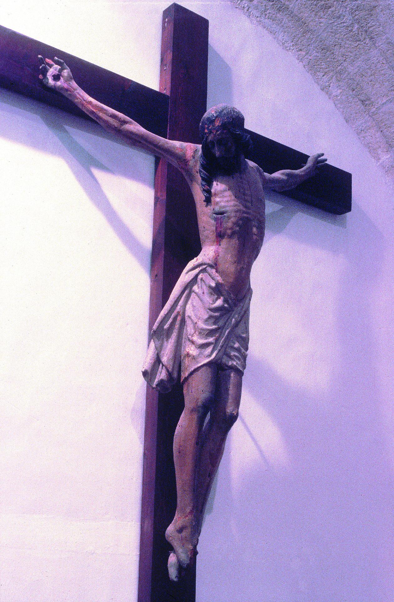 Gran parte de los daños que presentaba la escultura habían sido causados en el curso de anteriores intervenciones. La más importante tuvo lugar al colocar la imagen en el retablo de forma totalmente paralela al plano de la cruz, para lo cual se mutiló el reverso y se readaptaron los ensambles de los brazos hasta conseguir llevarlos hacia adelante y anular el arqueo y la tensión propia de los mismos. Por alguna razón, en ese o en algún otro momento, fueron amputadas también las manos y sustituidas por otras. A esto se suma la rotura de las piernas y la pérdida de fragmentos en ambos pies, ocasionados por golpes sufridos durante la Guerra Civil, según el testimonio popular. Por otra parte, la desaparición de parte del cabello y la presencia de numerosas perforaciones evidencian cambios de coronas y potencias a lo largo del tiempo.