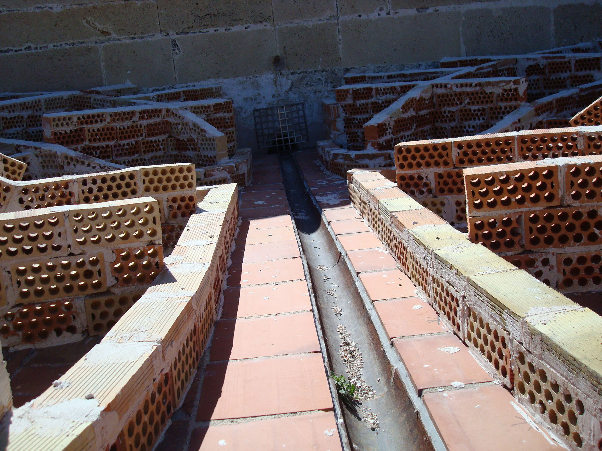 11º. El hueco central de ventilación se formará mediante chimenea de fábrica del mismo ladrillo macizo perforado de las citaras del empalomado. Se cubrirá con pieza confeccionada ad hoc de cerámica vidriada de 2.5cm de espesor, a modo de cazoleta invertida.