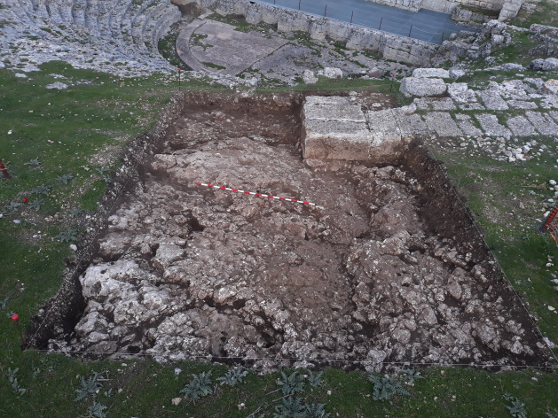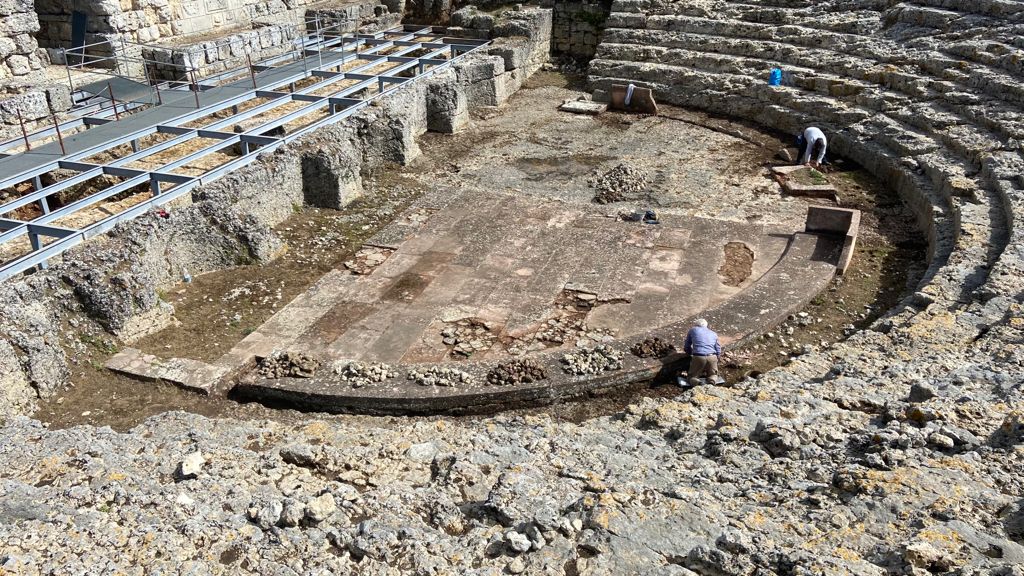 En relación a la limpieza del hiposkenium y la cávea, cabe destacar la aparición de diferentes estructuras que pueden ayudar al conocimiento del funcionamiento interno de los teatros, como son las pequeñas hornacinas localizadas en el hiposkenium interpretados como posibles espacios para las personas encargadas del funcionamiento interno del teatro; los seis pozos posiblemente de anclaje del telón; el balteus de la grada noroeste; agujeros para postes en la summa cavea; o los canales de evacuación de aguas.