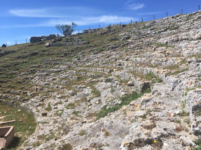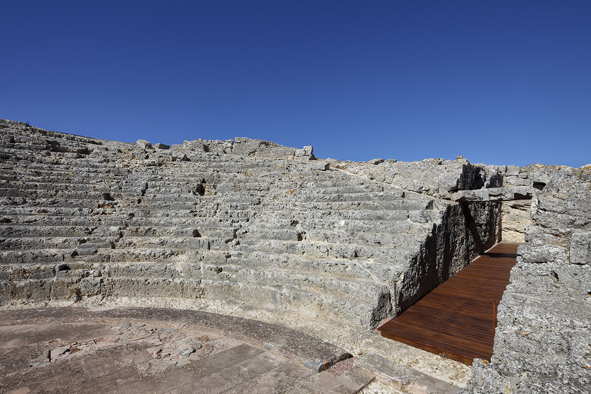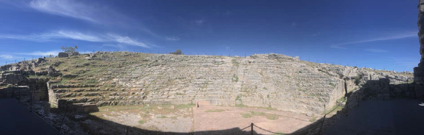 El teatro romano de Acinipo, como el de Sagunto y otros tantos dentro de España y fuera de ella, aprovecha el suave declive del terreno donde se asienta, a la manera griega.