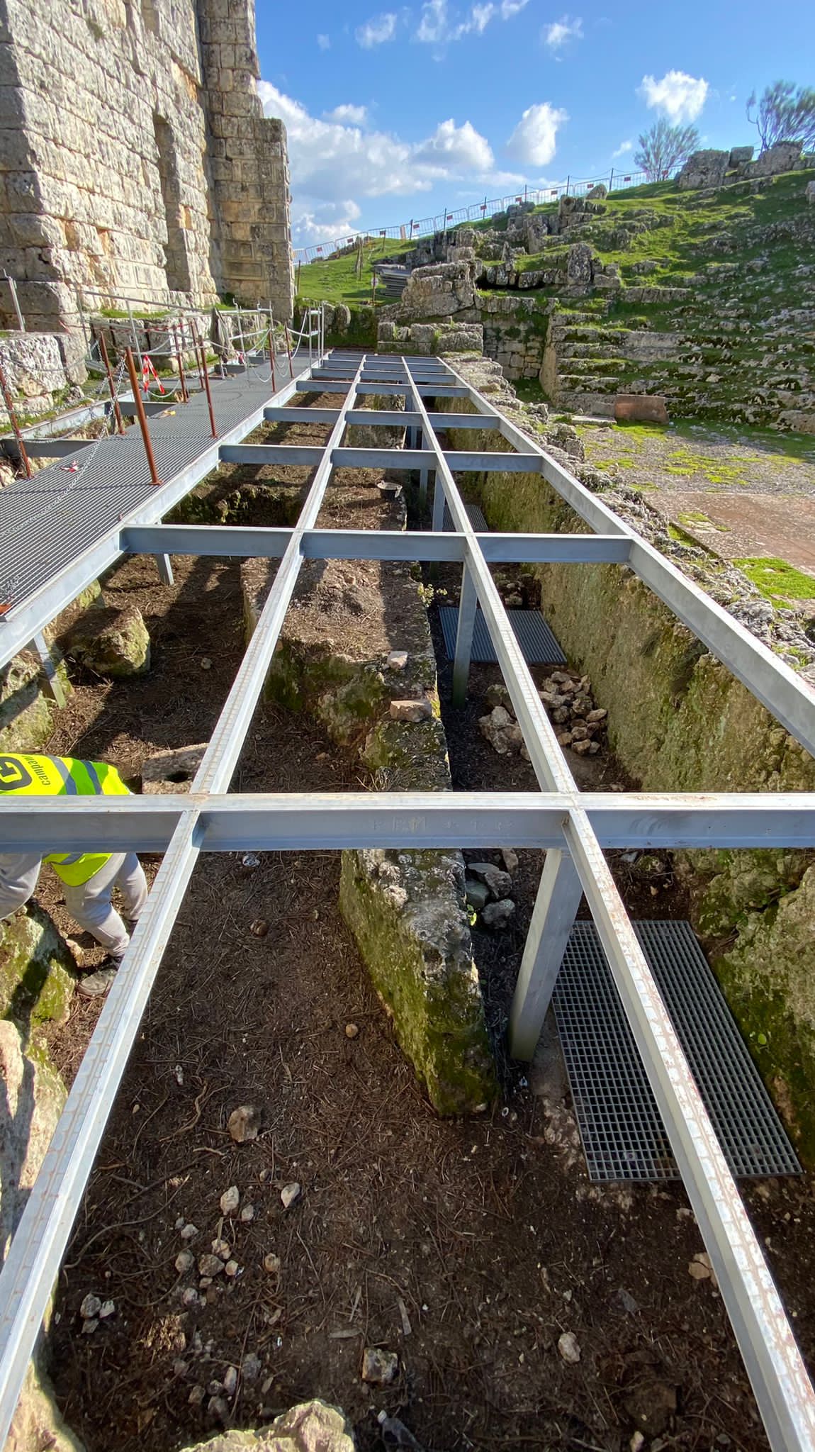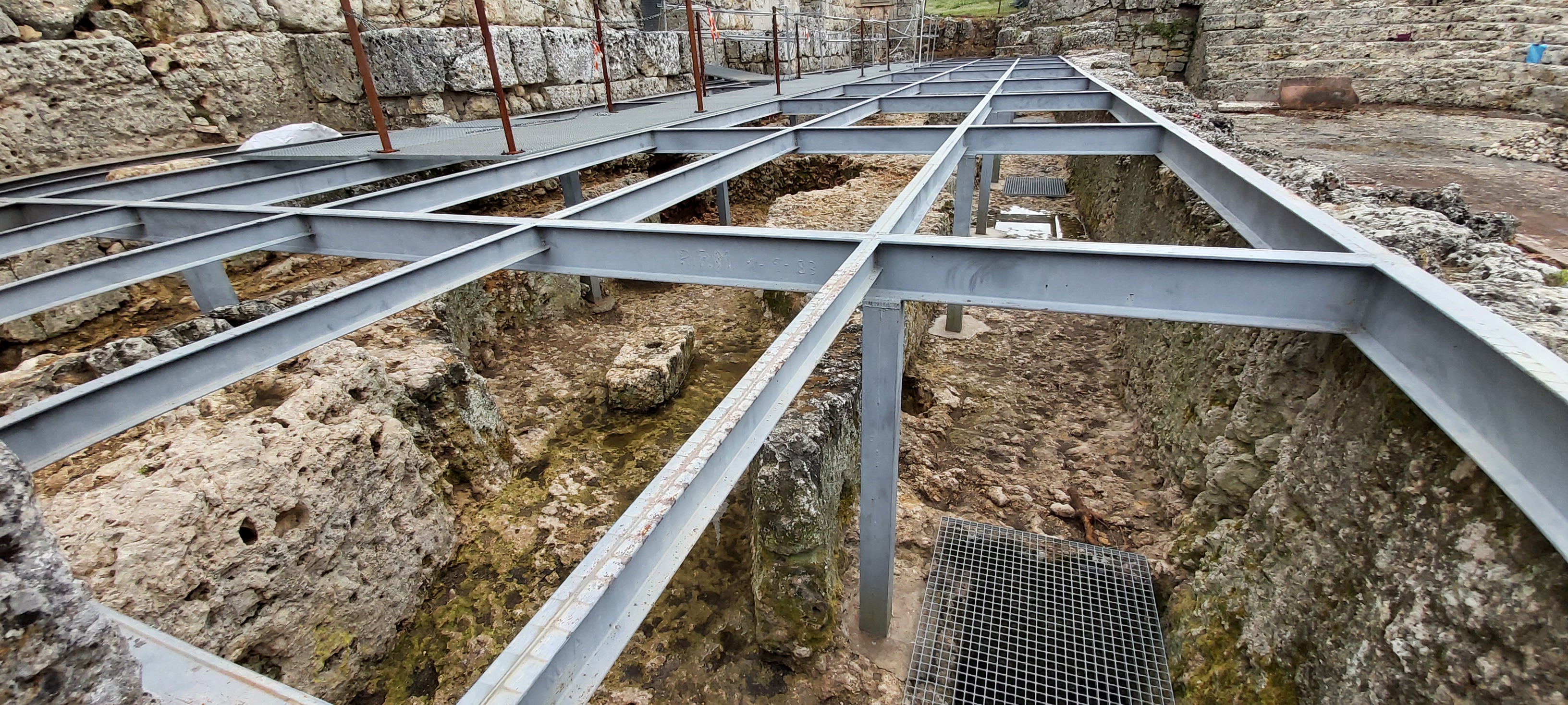 Por otro lado, el pulpitum, que originariamente debió ser de madera, en la intervención realizada en los años 80 se reconstruyó con una estructura metálica y una superficie transitable de tramex con el objetivo de permitir la visita al pulpitum y poder ver también el hyposcaenium.