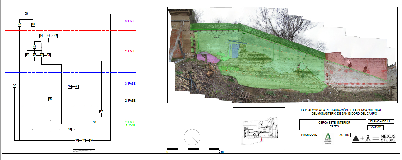La presente actuación ha estado centrada en la restauración y consolidación de la cerca histórica del Monasterio de San Isidoro, ubicada en el límite oriental y meridional del conjunto monacal.