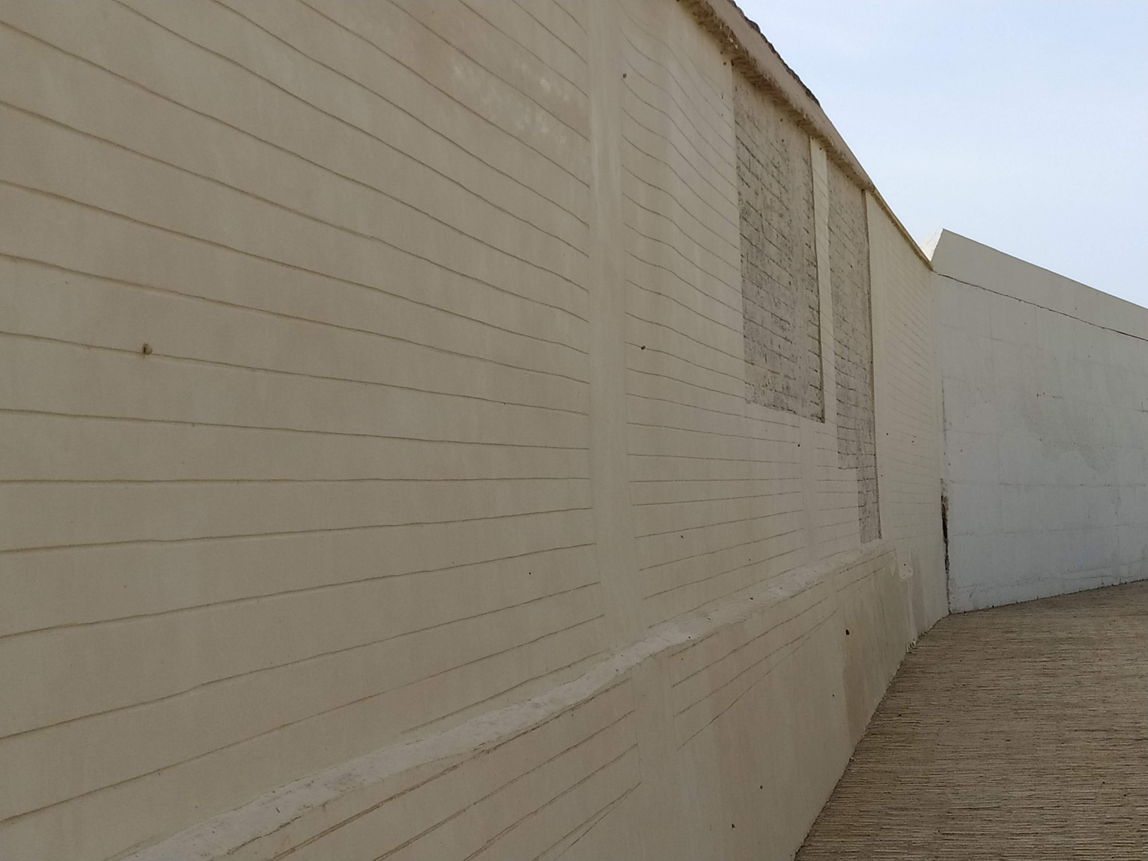 El muro no presenta juntas de construcción y se han producido fracturas en la fábrica por este motivo.