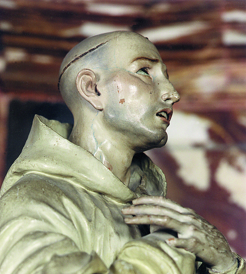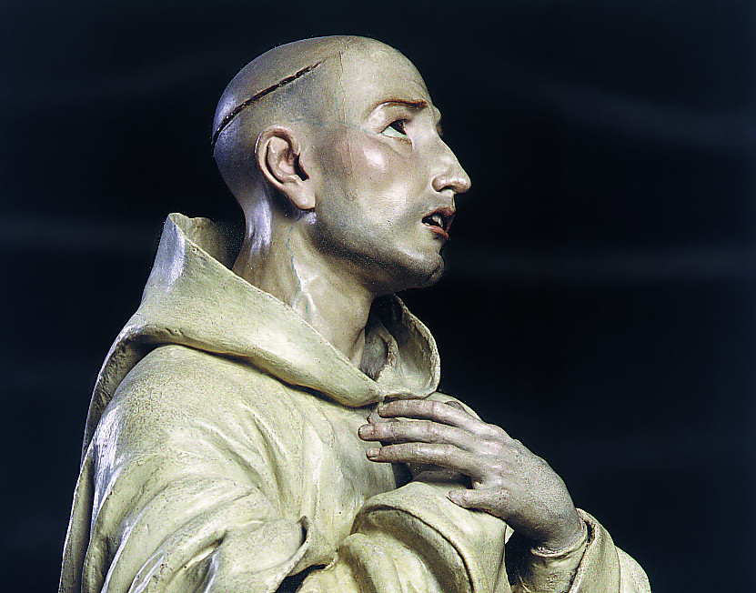 Esta imagen de San Bruno fue realizada por José de Mora para la sala capitular de la Cartuja de Granada, desde donde se trasladó a la sacristía, lugar en el que se ubica actualmente.