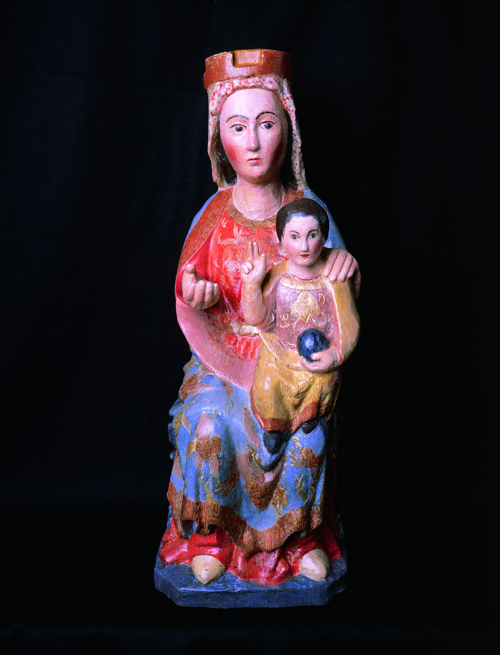 La madera fue al mismo tiempo consolidada y desinsectada mediante la inmersión de la pieza en una solución consolidante e insecticida. Los brazos derechos de la Virgen y el Niño se ensamblaron con espigas y se encolaron. Los dedos de la mano de la Virgen se restituyeron con espigas y pasta de madera. En las grandes pérdidas de la cabeza y peana y en las pequeñas mutilaciones de la nariz y barbilla del Niño se hicieron injertos con madera de balsa. Los agujeros de los xilófagos se rellenaron con pasta de madera.