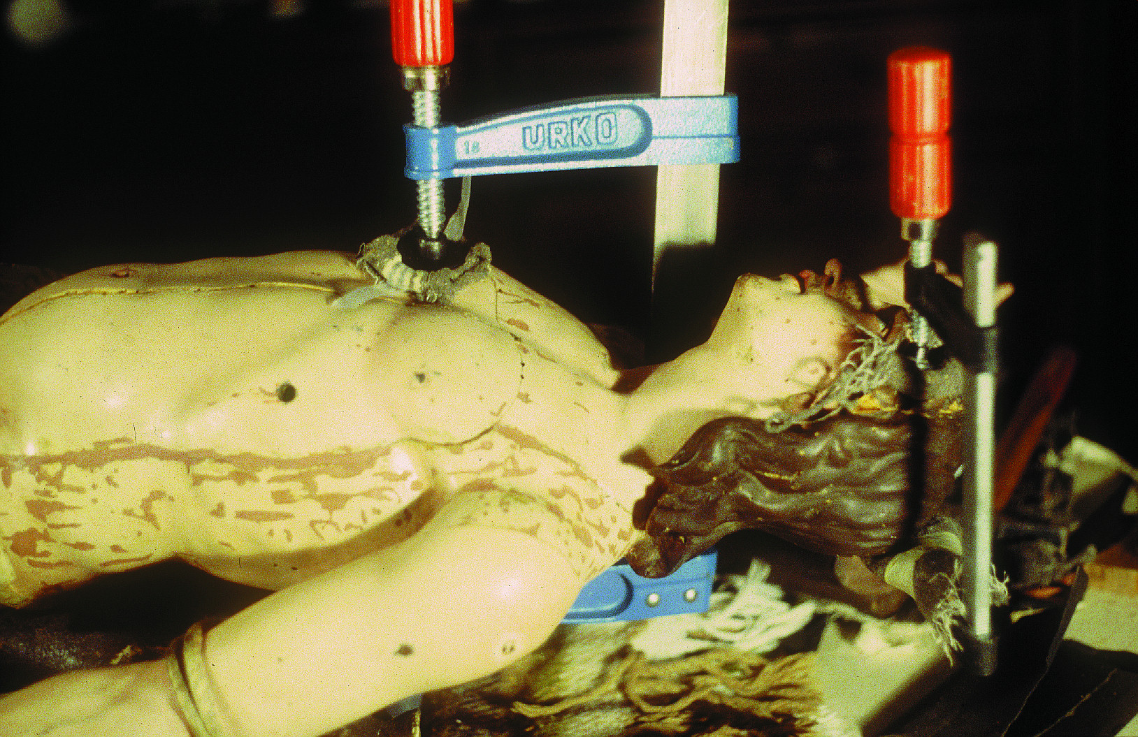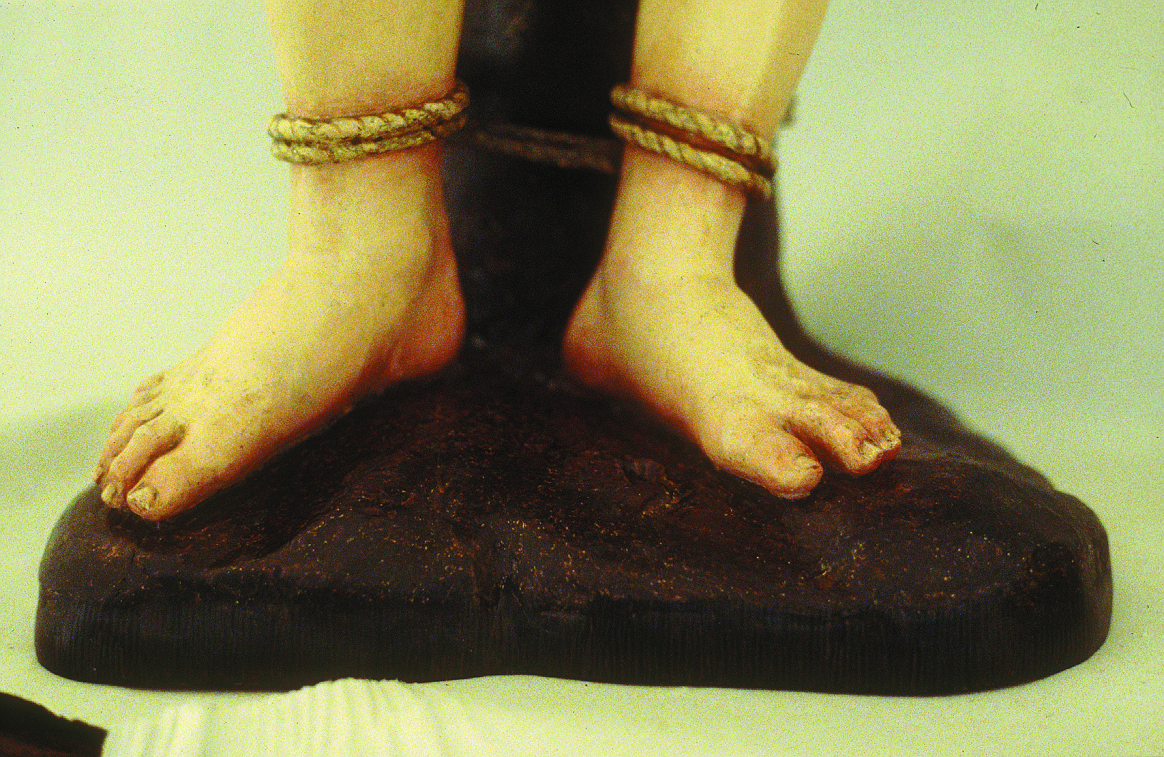 La base de la escultura había sido mutilada en algún momento al eliminarse las piezas más dañadas por los xilófagos y sustituirse por una tablazón, que resultó igualmente atacada.