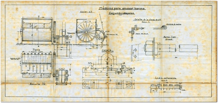 En esta ocasión presentamos unos planos elaborados por la empresa Compañía Anónima de Suministros Marítimos e Industriales. Estos documentos han llegado al Archivo Histórico Provincial de Cádizdentro de los fondos de Vigorito, S.A. Son los planos para la construcción e instalación de diversa maquinaria industrial en la fábrica de la Harinera Castro, S.A. que estaba situada en la calle Abreu, muy cerca del Mercado Central.